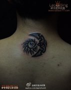 武汉最好纹身店:帅气的颈部图腾太阳月亮纹身图案作品