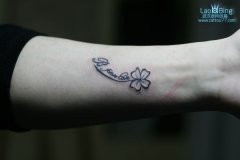 武汉专业纹身店:清新风格的手臂四叶草纹身图案作品