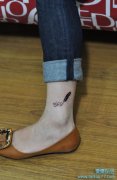 武汉专业纹身店:腿部羽毛文字纹身图案作品