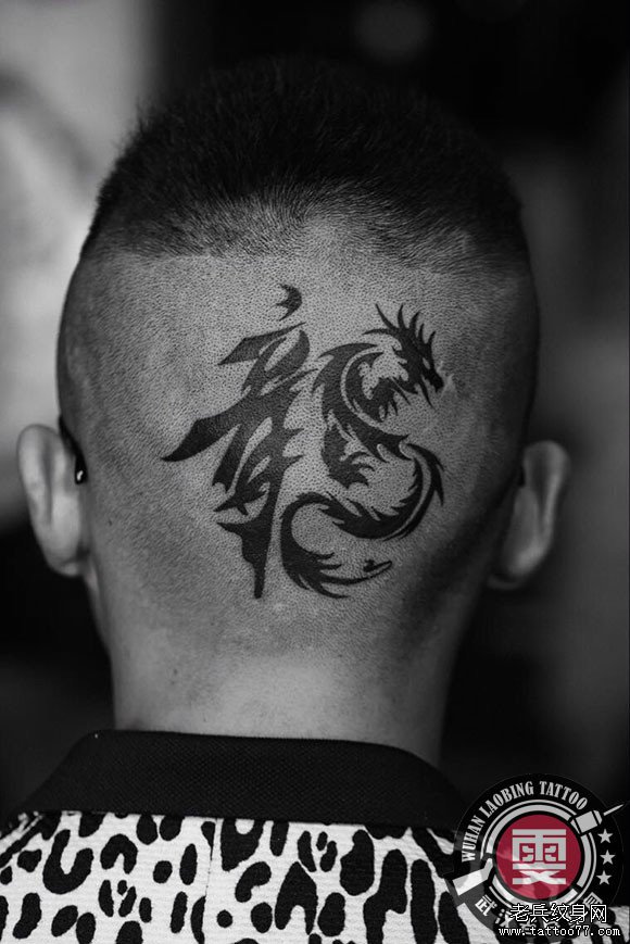 头部个性图腾龙文字纹身图案作品