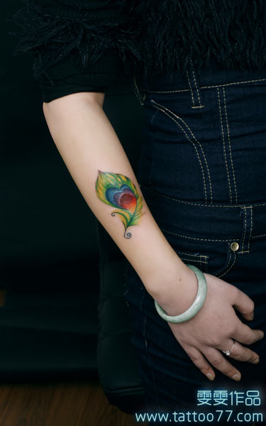 武汉最好纹身店:遮盖失败纹身--手臂羽毛纹身图案