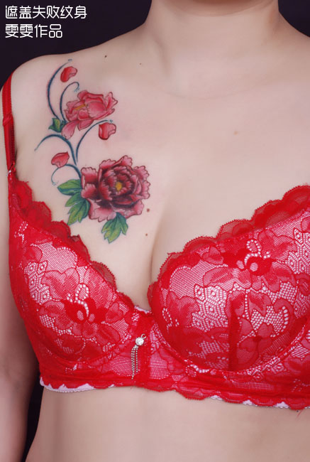 武汉专业纹身店:遮盖失败纹身--胸部牡丹纹身图案作品