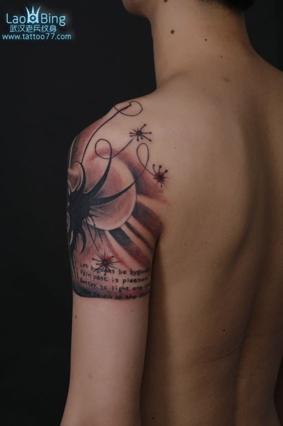 肩膀莲花鲤鱼遮盖刺青图案作品