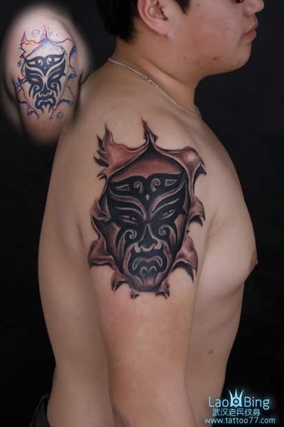 大臂鲤鱼刺青图案作品遮盖旧纹身