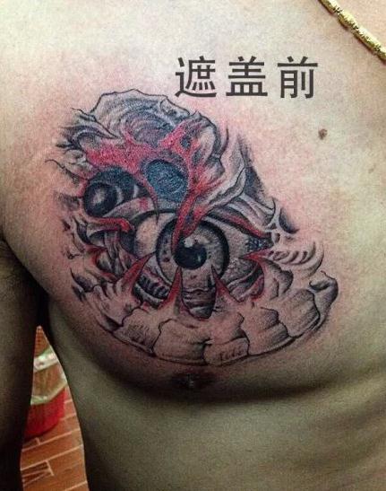 武汉最好纹身店打造的遮盖旧图--传统牡丹纹身图案作品