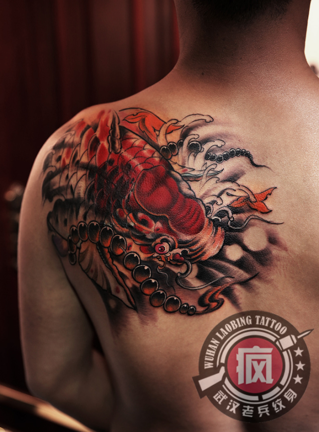 武汉最好纹身店打造的遮盖旧图--肩背鲤鱼纹身
