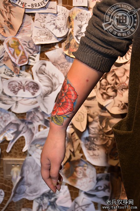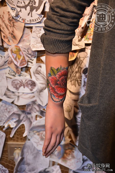 手腕遮盖玫瑰纹身作品