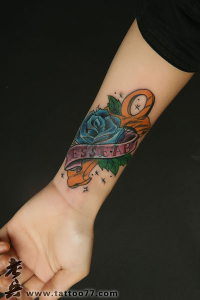 美女纹身 手臂纹身 十字架玫瑰纹身