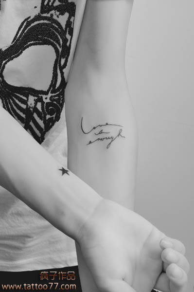 武汉专业纹身店:手臂字母五角星纹身图案作品