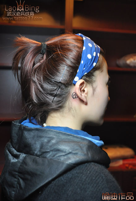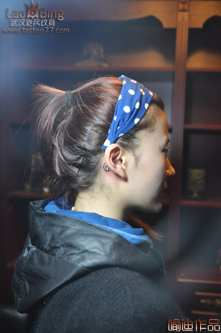 武汉纹身店老兵刺青师喻迪给美女打造的耳部小文字纹身