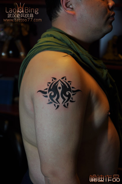 帅气的大臂太阳纹身由武汉最好纹身店打造