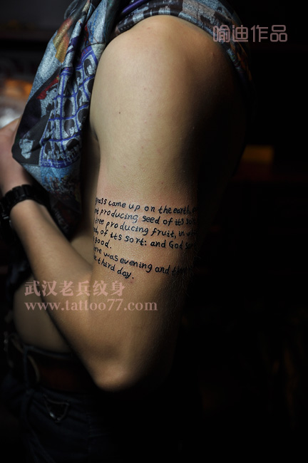 帅气的大臂文字纹身由武汉最好纹身店打造