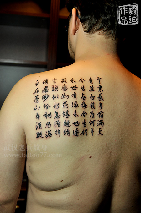 武汉最好纹身店为德国来的朋友打造的后背汉字纹身作品