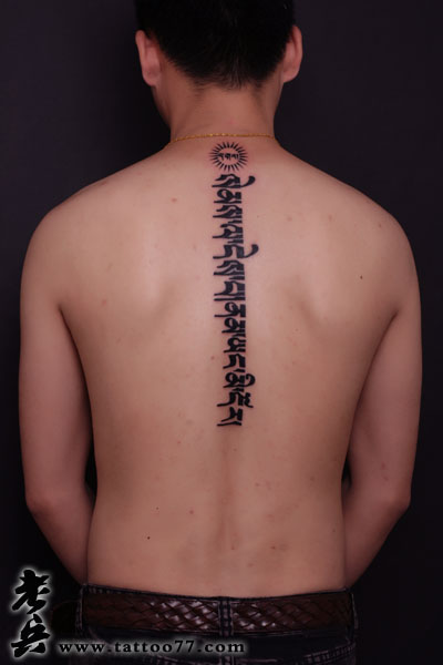武汉纹身店:背部藏文文字纹身