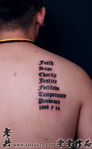 武汉纹身店:背部设计文字纹身