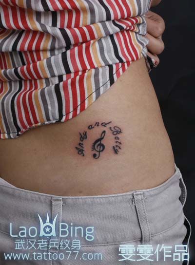 武汉纹身店:MM的腰部时尚文字音符纹身图案作品