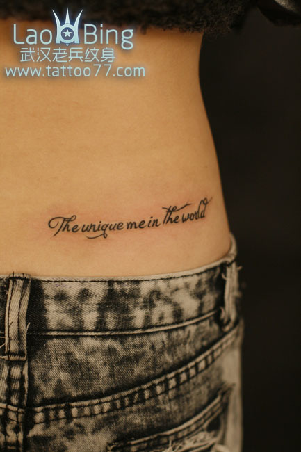 武汉最好纹身店:美女腰部文字纹身图案作品