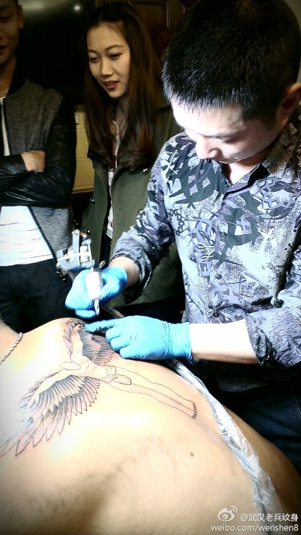 老兵女纹身师雯雯后背翅膀纹身制作花絮