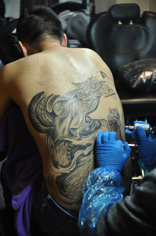 武汉最好纹身店老兵刺青兵哥今天满背二郎神开工~~