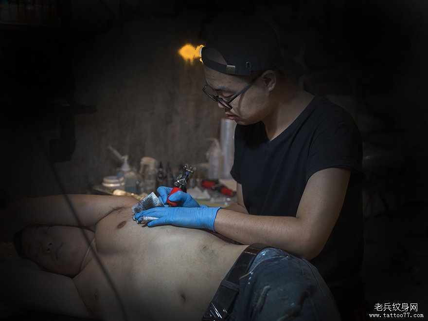 老兵女纹身师雯雯后背翅膀纹身制作花絮