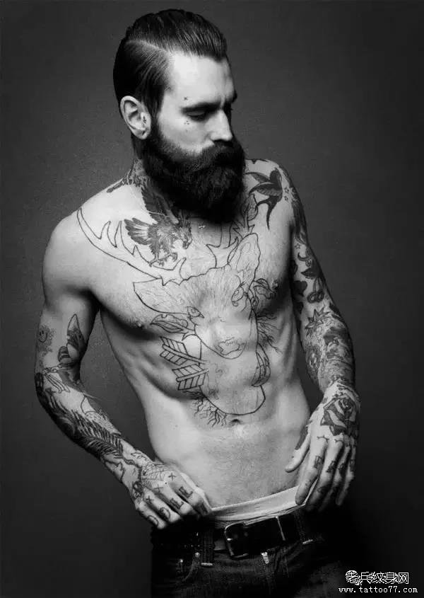 油头胡子大纹身,现在模特界的「弄潮儿」,真是越来越野了! 在外网的纹身网站上 根本不缺少各种「 高颜值 」的存在 无论是纹身本身的颜值 还是为纹身代言的男模女模 和各种走小鲜肉路线的模特不同 一位大胡子怪蜀黍 成功的引起了本妹的注意 他满身的Old sch