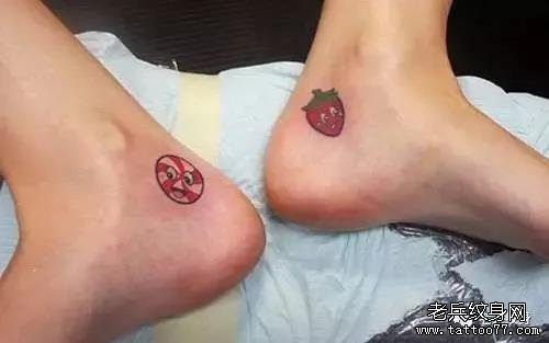 水果姐左右脚踝各有一个薄荷糖和草莓纹身