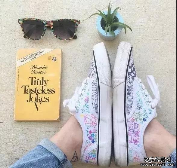 由于脚跟处位置特殊,在这里纹身图案的选择性就比较局限,多数都是非常Mini的小纹身,船锚,小三角,太阳和月亮这样的图案非常流行。