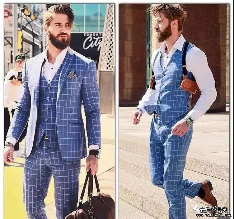 一头帅气金发 五官精致、满脸胡渣 重点是令人羡慕的八块腹肌 穿西装是禁欲系男神