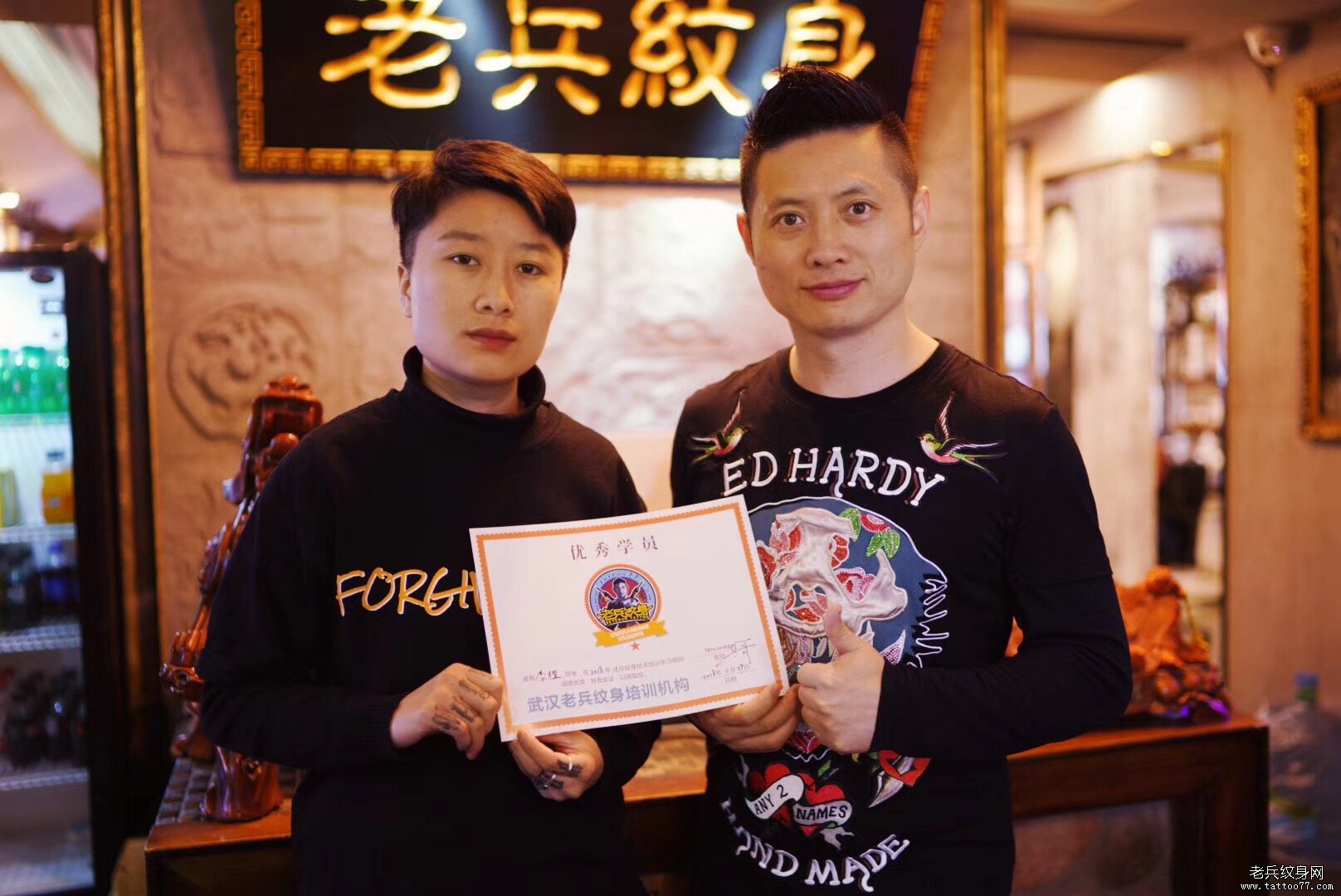 武汉老兵纹身培训学校兵哥与学员合影