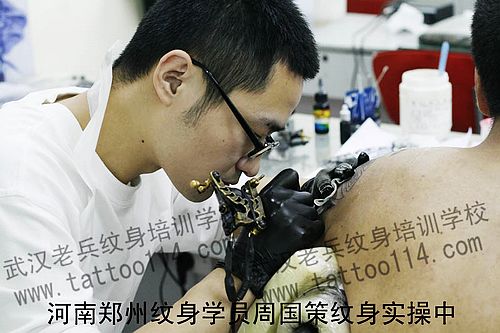 武汉最好的文身培训学校:郑州纹身学员周国策文身图案实操