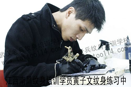 武汉老兵纹身学校:江西纹身学员黄子文皮革纹身练习中