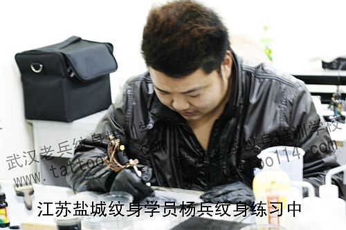 江苏纹身培训学校:江苏盐城纹身学员杨兵纹身练习中