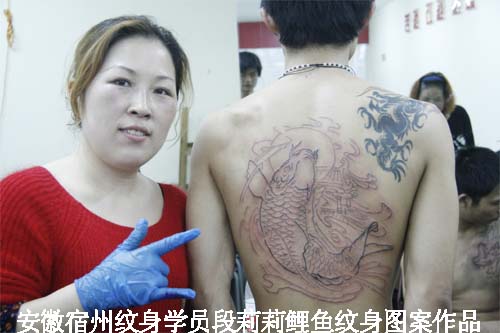 安徽纹身学员段莉莉鲤鱼割线纹身图案作品