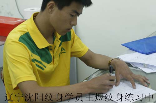 辽宁沈阳培训纹身学员王煜纹身实操中