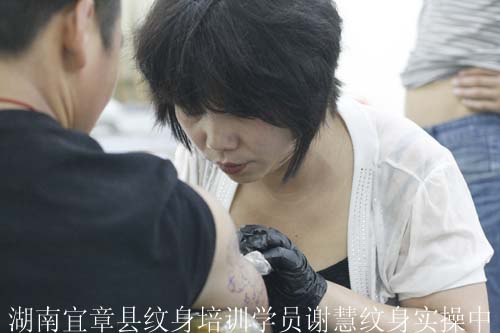 湖南宜章专业纹身培训学员谢慧大臂纹身图案实操