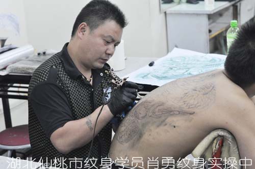 最好的文身培训学校:仙桃文身学员李非欧美鬼头文身图案图片