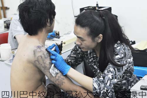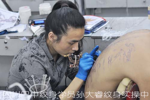 四川巴中纹身学员孙大睿纹身实操中