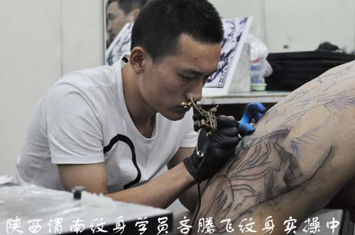 老兵纹身学校:陕西纹身学员常矗纹身实操中