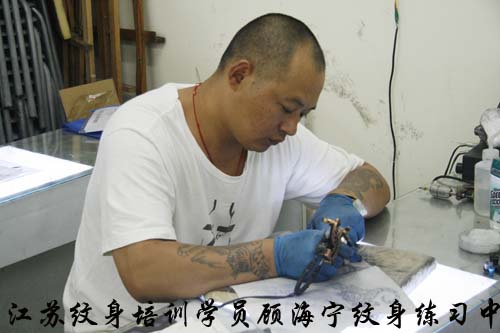 湖北枝江纹身培训学员杜鹏纹身练习中