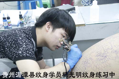 贵州湄潭纹身学员杨光明纹身练习中
