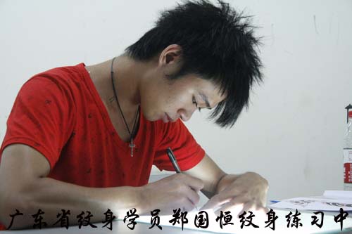黑龙江佳木斯文身培训学员王奎人文身练习中