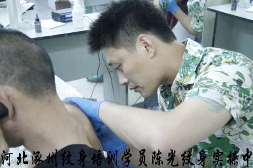 河北涿州专业文身培训学员陈光大臂纹身图案实操中
