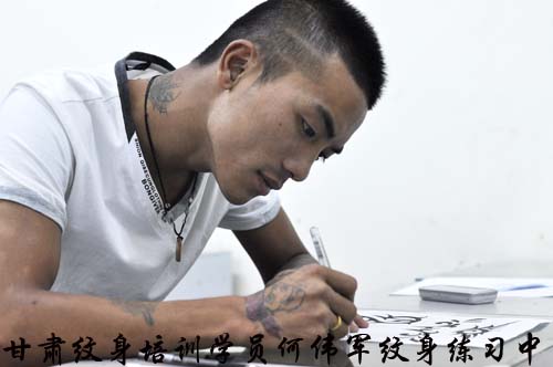 甘肃纹身师培训学员何伟军纹身实操中