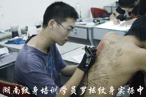 湖南纹身培训学员田观宝在武汉老兵学校实操中