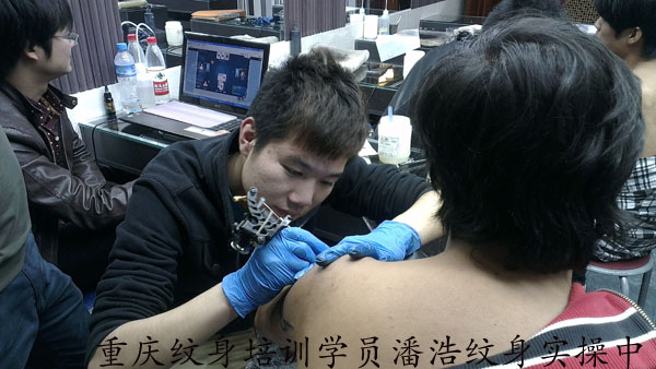 重庆纹身培训学员潘浩大臂纹身图案实操中