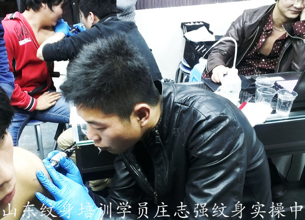 山东纹身学员灵通在武汉老兵纹身学校实操中