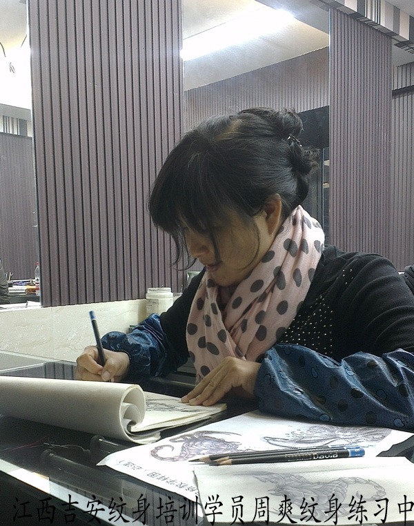 黑龙江齐齐哈尔纹身培训学员三桥纹身练习中