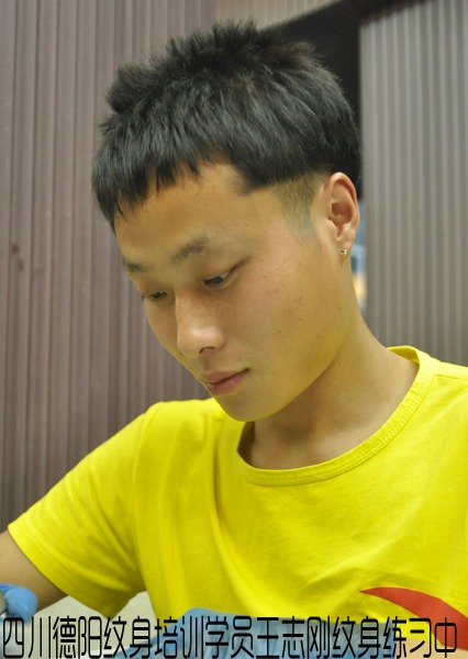 四川德阳专业纹身培训学校纹身学员王志刚纹身练习中