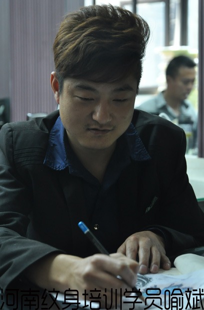 河南专业学纹身培训学校纹身学员喻斌纹身练习中