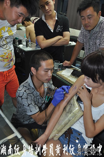 由武汉专业学纹身学校提供的贵州纹身学员韩靖雯纹身实操中